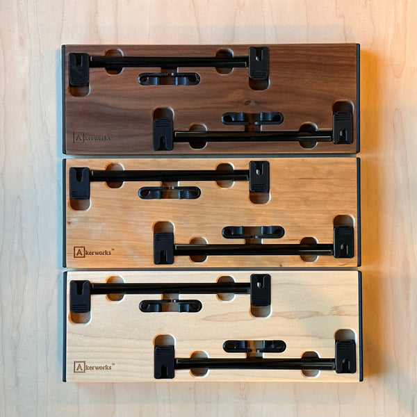 This custom-fabricated Lazy Kate by Akerworks consists of a solid piece of hardwood (American Black Cherry, Black Wanlut or Hard Maple) holding four carbon fiber shafts. For the Scrappy Kates please note that due to the nature of their construction, each one is unique.