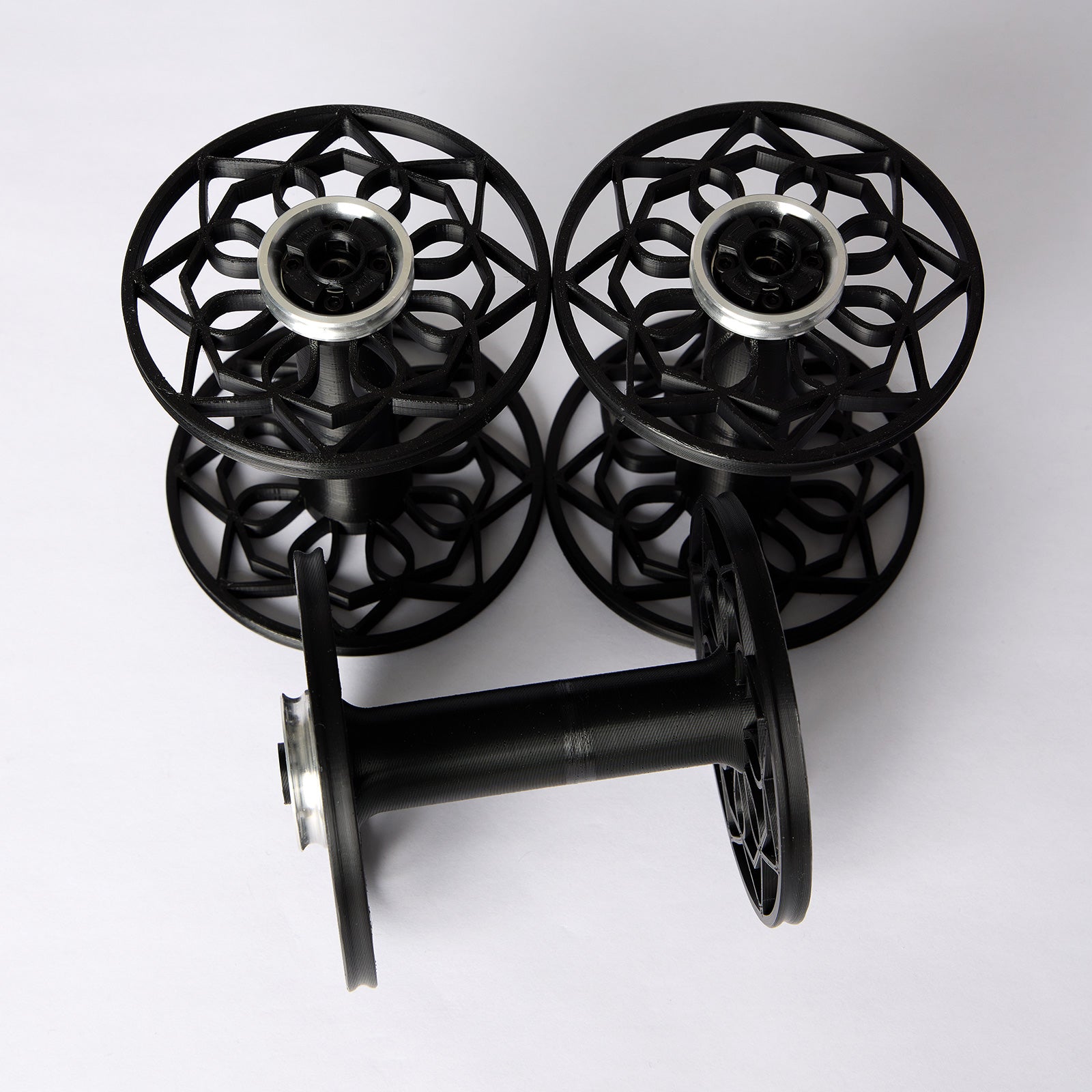 A set of three bobbins for the Starling V1/V2 Mini in the color of your choice. These bobbins come with an aluminum drum.