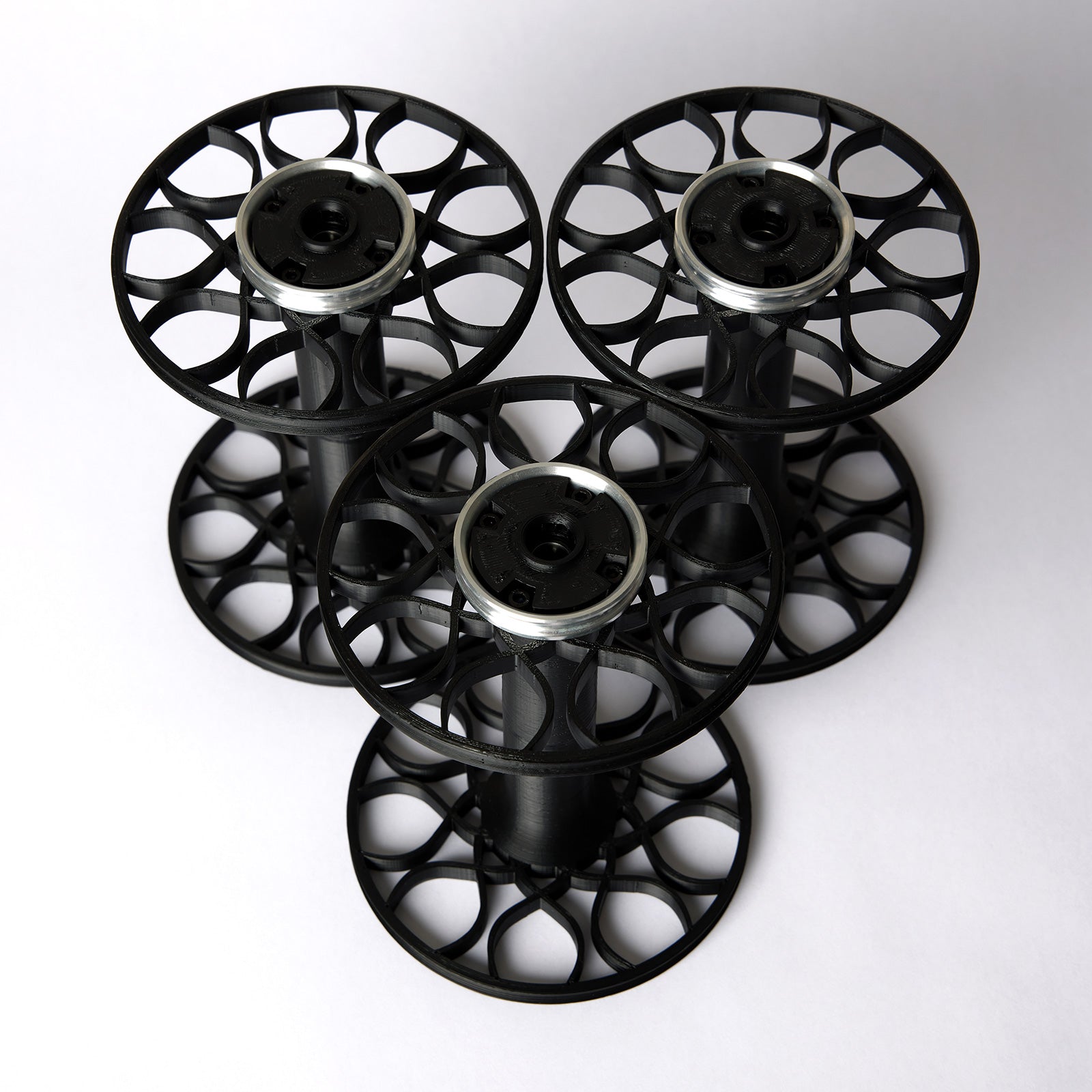 A set of three bobbins for the Starling V3 Standard Flyer in the color and pattern of your choosing. Each set of three will contain the same color and pattern. If you wish to have multiple patterns or colors, you will need to purchase them as separate sets.